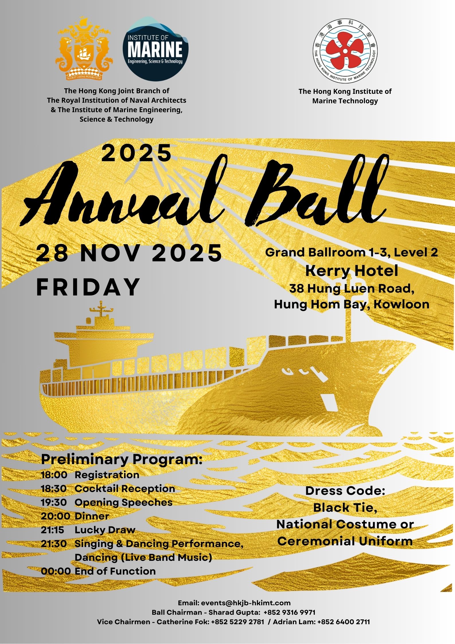 Upcoming Events 2025 Joint Annual Ball will be held on 28-Nov-2025 (Friday) at Grand Ballroom 1-3, Level 2, Kerry Hotel, 38 Hung Luen Road, Hung Hom Bay, Kowloon. Please click here to dlownload.
